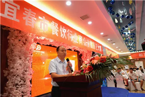 宜春市餐飲行業商會副會長及陸加壹餐飲有限公司董事長黃平冰致歡迎詞