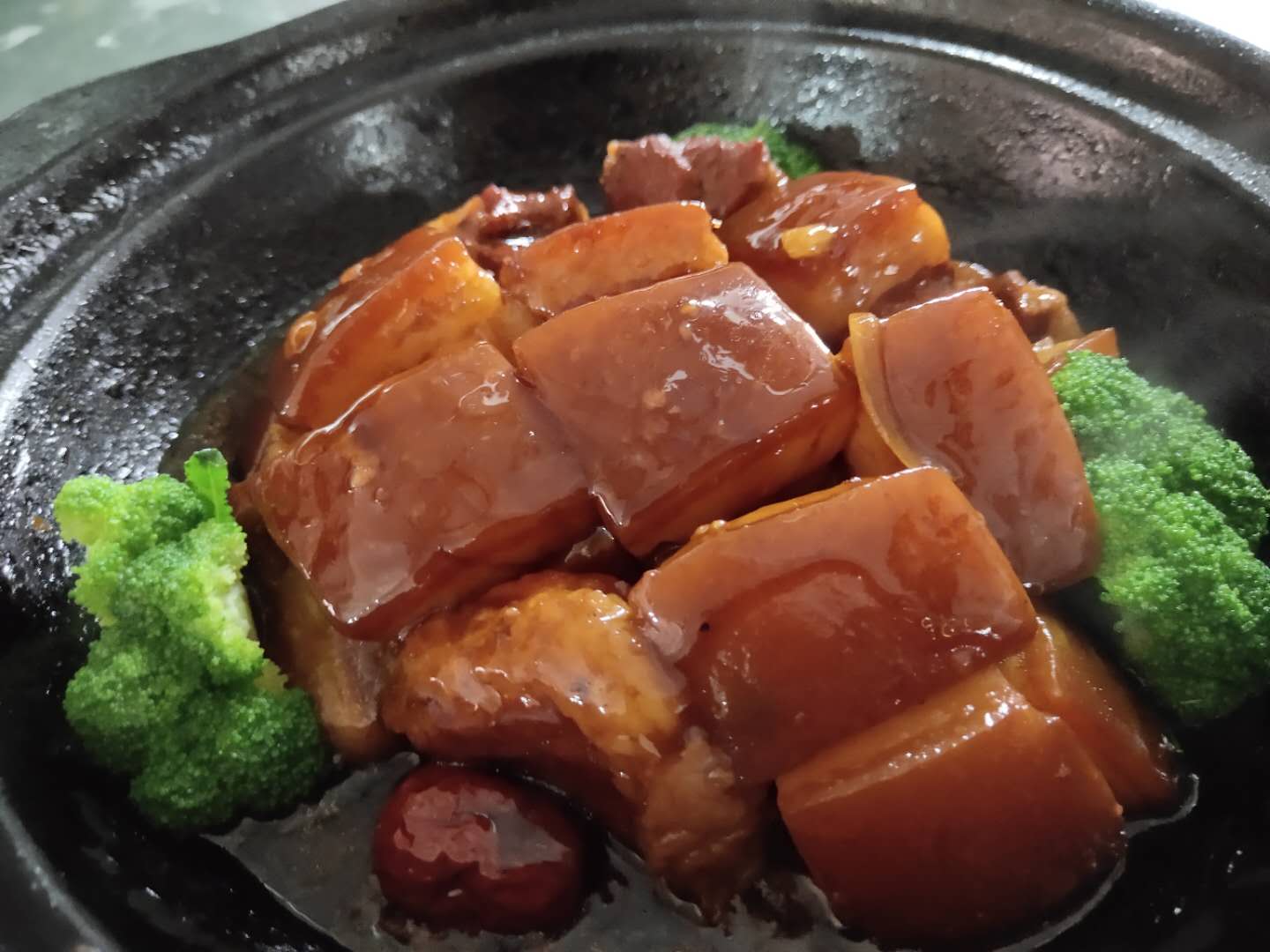 看色澤就知道肉已經(jīng)非常入味,整塊肉燉的十分軟爛,油脂幾乎要和皮肉分離。吃的時候牙齒幾乎不需要用力,飽滿豐腴的肉自己在唇齒間化開。